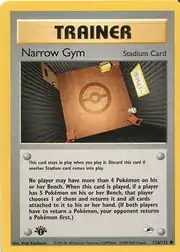Narrow Gym (Japanese: せまいジム Narrow Gym) is a Stadium card. It is part of the Gym Heroes expansion.