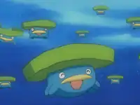 Ash and his friends first encountered the Lotad while swimming in a lake. Initially, they were frightened, but they quickly learned they were harmless. The Lotad even put on a spectacular Water Gun show for them. Later, they were captured by Team Rocket in their boat, but with the help of Pikachu and a powerful Lotad, they were freed, and Team Rocket was sent blasting off. The Lotad only know the move Water Gun. However, Brock's newly caught Lotad was shown to know Water Gun and Razor Leaf. | ||