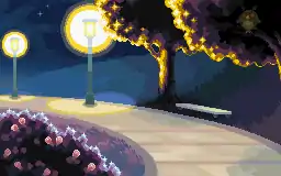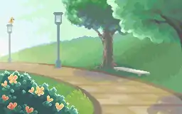 The park is separated into two main areas. The southern part contains several benches and a patch of flowers. Several people rest in this area, including a Teacher with a Persian that gives a Quick Claw to the player.