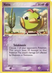 Natu (Japanese: ネイティ Naty) is a Psychic-type Basic Pokémon card. It is part of the EX Unseen Forces expansion.