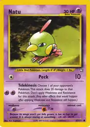 Natu (Japanese: ネイティ Naty) is a Psychic-type Basic Pokémon card. It is part of the Neo Genesis expansion.