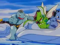 | Danny's Machoke was only seen in the second challenge against Ash, where it helped to carve a sled from the ice that Nidoqueen froze earlier.