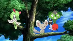 The Pokémon living here are afraid of humans and Pokémon owned by these humans, including Ash, his friends, Kimia, and their Pokémon. A Gulpin residing there became wary of Ash after Ash hugged it. Volcanion revealed that the Gulpin had been abandoned by its trainer after receiving a big hug. However, with time, the Pokémon were able to trust Ash and his friends, and began to play around together. By the end of the movie, Ash and his friends gained the trust of Volcanion and became honorary Nebel Plateau Pokémon.