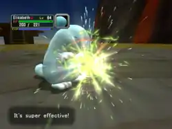 The ball on top of Mime Jr's head glows white, and both of its arms glow white as well. It then hits the opponent with one of its arms. | ||