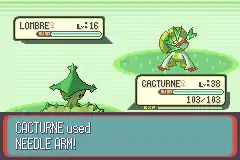 | Cacturne reaches out one of its arms and releases multiple long needles from its hand, stabbing the opponent with them. | |||