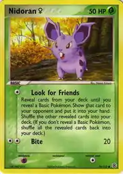 Nidoran♀ (Japanese: ニドラン♀ Nidoran♀) is a Grass-type Basic Pokémon card. It is part of the EX FireRed & LeafGreen expansion.
