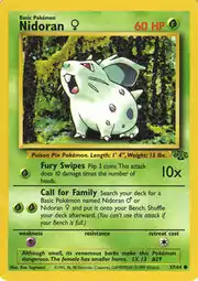 Nidoran♀ (Japanese: ニドラン♀ Nidoran♀) is a Grass-type Basic Pokémon card. It was first released as part of the Jungle expansion.