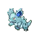 Nidorina is a quadrupedal, sky-blue Pokémon with dark-blue patches. It has red eyes, large, spiny ears, and has two pointed teeth protruding from its upper jaw. It possesses large poison spikes, which it retracts whenever it is with a group, feeding its children, or while resting in its burrow. Its paws have three claws each, and it is able to stand on its hind legs. The hind legs are longer and thicker than its forelegs. It has a stubby tail. Nidorina is a female-only species.