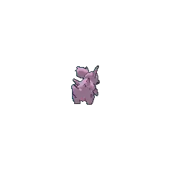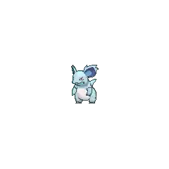 Nidorina is a gentle Pokémon, and it is known to be a caring mother that chews food for its young. It seems to display close family bonds with others of its kind, and becomes nervous when separated. Nidorina prefers not to fight since its horn grows slowly, but if forced or enraged, it prefers physical attacks such as clawing and biting. Nidorina prefers to chew its food into a paste before spitting it out and feeding its children. It also emits ultrasonic cries to befuddle foes. Nidorina live in burrows at hot savannas and plains.
