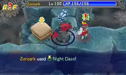 Night Daze (Japanese: ナイトバースト Night Burst) is a damage-dealing Dark-type move introduced in Generation V. Prior to Generation VII, it was the signature move of Zorua and Zoroark.