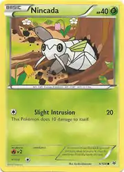 Nincada (Japanese: ツチニン Tutinin) is a Grass-type Basic Pokémon card. It was first released as part of the Roaring Skies expansion.