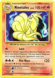 Ninetales (Japanese: キュウコン Kyukon) is a Fire-type Stage 1 Pokémon card. It is part of the Evolutions expansion.