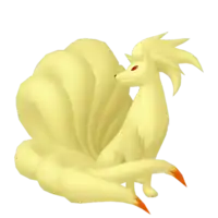 While intelligent enough to easily understand human speech, Ninetales is a very vengeful Pokémon that has been known to curse those who mistreat it. It can live for 1,000 years due to the energy within its nine tails, each of which is said to have a different mystical power. Flames spewed from its mouth can hypnotize an opponent and its gleaming red eyes that are said to give it the ability to control minds. The anime has shown that it can swim. Being the result of an evolution via Evolution stone, Ninetales is rarely found in the wild, though they can be found in grasslands.