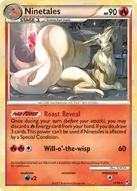 Ninetales (Japanese: キュウコン Kyukon) is a Fire-type Stage 1 Pokémon card. It was first released as part of the HeartGold & SoulSilver expansion.