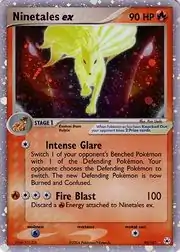 Ninetales ex (Japanese: キュウコンex Kyukon ex) is a Fire-type Stage 1 Pokémon-ex card. It is part of the EX Hidden Legends expansion.
