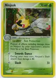 Ninjask (Japanese: テッカニン Tekkanin) is a Grass-type Stage 1 Pokémon card. It is part of the EX Deoxys expansion.