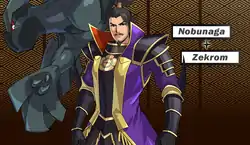 After conquering all of Nobunaga's territories, the Hero/Heroine challenges Nobunaga himself at Dragnor's castle, where Nobunaga calls upon his Zekrom to battle. The Hero/Heroine is successful, but Nobunaga escapes. After the Hero/Heroine links with Arceus, Nobunaga returns, calling upon his Black Rayquaza and his closest allies in a final bid to stop the Hero/Heroine.