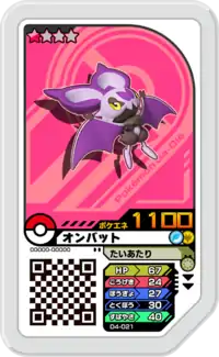 Noibat (Japanese: オンバット Onbat) is a Grade 1 Pokémon Ga-Olé disk. It is part of the fourth Dash set.