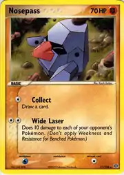 Nosepass (Japanese: ノズパス Nosepass) is a Fighting-type Basic Pokémon card. It is part of the EX Emerald expansion.