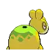 Numel is a yellow, quadrupedal Pokémon that resembles a Dromedary camel with a volcano-like hump on its back. The hump is green at the very top and fades out into yellow with small green spots. It contains magma of almost 2,200 °F (1,200 °C). A female will have a bigger hump than a male. It has bangs on top of its head, sleepy eyes with brown circles around them, and short, stubby legs.