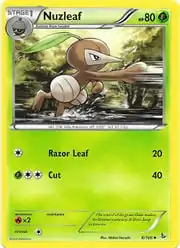 Nuzleaf (Japanese: コノハナ Konohana) is a Grass-type Stage 1 Pokémon card. It is part of the Flashfire expansion.