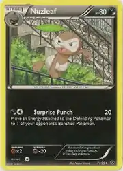 Nuzleaf (Japanese: コノハナ Konohana) is a Darkness-type Stage 1 Pokémon card. It is part of the Next Destinies expansion.