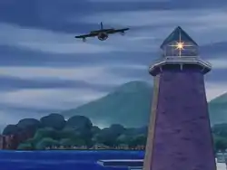 In Throwing in the Noctowl, Ash and his friends returned to Olivine City aboard Wings Alexander's airplane after missing the ferry from Transit Town, guided to their destination by the restored Shining Lighthouse.