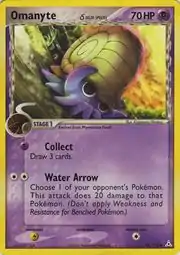 Omanyte δ (Japanese: オムナイト δ Omnite δ) is a Psychic-type Stage 1 Pokémon card. It is part of the EX Holon Phantoms expansion.