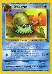 Omanyte (Japanese: オムナイト Omanite) is a Water-type Stage 1 Pokémon card. It was first released as part of the Fossil expansion.