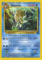 Omastar (Japanese: オムスター Omstar) is a Water-type Stage 2 Pokémon card. It was first released as part of the Fossil expansion.