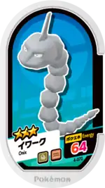 Onix (Japanese: イワーク Iwark) is a Grade 3 Pokémon Mezastar tag. It is part of the fourth set.