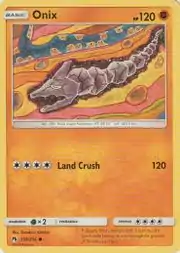 Onix (Japanese: イワーク Iwark) is a Fighting-type Basic Pokémon card. It is part of the Lost Thunder expansion.