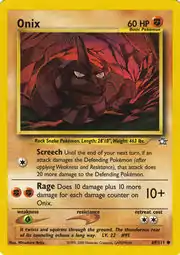 Onix (Japanese: イワーク Iwark) is a Fighting-type Basic Pokémon card. It is part of the Neo Genesis expansion.