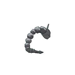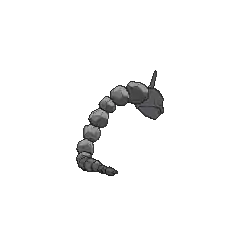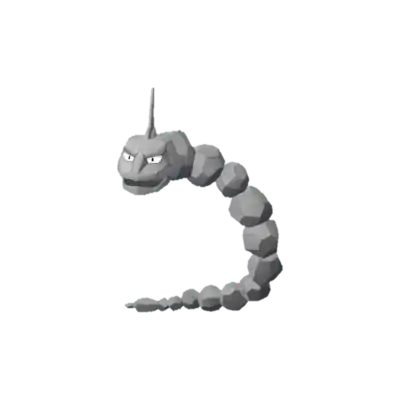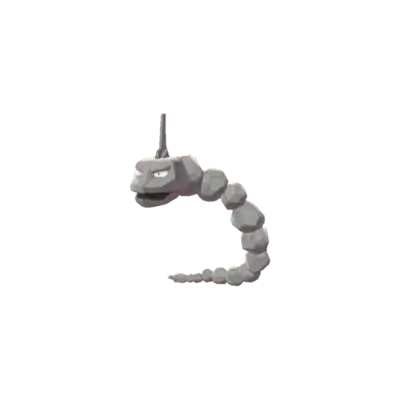 Onix is a Pokémon composed of a giant chain of gray boulders that become smaller towards the tail. Its length makes it the tallest Rock-type Pokémon. It has black eyes and a rounded snout. On top of its head is a rocky spine. As it grows older, it becomes more rounded and smoother, eventually becoming similar to black diamonds. Inside its brain is a magnet that serves as an internal compass, guiding Onix wherever they need to go and prevents them from getting lost while digging.