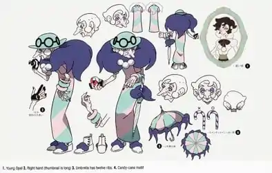 Opal first appeared in The Tale of You and Glimwood Tangle!, where she encountered Ash and Goh in Ballonlea and challenged them to a series of quizzes. In the process, Opal made them and their Pokémon wear pink clothes for each wrong answer they got. As Chloe reunited with the group, Opal revealed that she had asked the quizzes to keep the boys from recklessly searching for Chloe and let her come to them on her own.