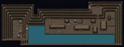 Starting from the western entrance from Route 203, the passage approaches an upside down "T" intersection. By traveling east, past two Trainers, the entrance to Oreburgh can be reached. However, by turning north, the tunnel leads to a stairwell going down to the basement floor. Several breakable rocks are scattered around the tunnel, including one that blocks the passage to the basement and can only be removed with Rock Smash.