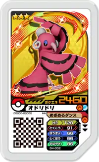 Oricorio (Japanese: オドリドリ Odoridori) is a Grade 3 Pokémon Ga-Olé disk. It is part of the fourth Dash set.
