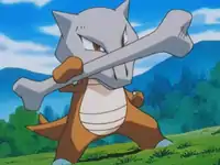 Otoshi then admitted that he did not have any Badges, as Team Rocket had stolen them. Ash and his friends, despite running the risk of being late for the Pokémon League Tournament, decided to help Otoshi get them back. They looked for them and eventually found James and Meowth but they could not find the Badges. Suddenly, Marowak decided that it did not want to be Otoshi's Pokémon anymore. Otoshi tried to comfort it, but Marowak walked off angrily. It was later seen when Otoshi's Doduo was in danger of being captured by Jessie. It appeared in the nick of time, knocking Jessie's Poké Ball out of the way and defeating her Arbok. Team Rocket tried to escape in their balloon but Pikachu sent them blasting off and Otoshi got his Badges back. Afterwards, Marowak rejoined Otoshi's team and said goodbye to Ash and his friends. Marowak's known moves are Focus Energy, Bone Club, and Bonemerang. | ||