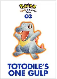 Totodile's One Gulp (Japanese: ワニノコがぶりんちょ! Waninoko's Big Gulp!) is written by Akihito Toda and illustrated by Benimaru Itoh. It is the 3rd book in the Gold and Silver Pokémon Tales series. The story of this particular book focuses on Totodile. It is 18 pages long.