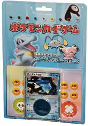 The Gift Box Mew • Lucario (Japanese: ギフトボックス ミュウ•ルカリオver.) was released on November 16, 2005 and features the New Species Pokémon Mew and the Aura Pokémon Lucario following their appearances in Lucario and the Mystery of Mew in two of the four packaged quarter decks. The other two quarter decks feature the Rogue Pokémon Crawdaunt and the Bite Pokémon Mightyena. All featured Pokémon appear as Pokémon-ex in their respective decks. The gift box also includes two special Pokémon ![]()