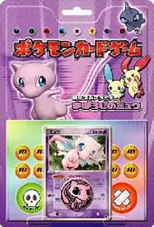 The Mirage's Mew Constructed Starter Deck (Japanese: 構築済みスターター まぼろしのミュウ) was released alongside the Mirage Forest expansion on June 30, 2005, and is named in accordance with the backstory established for the expansion. The New Species Pokémon Mew is included among a few Psychic-types, as is the Marionette Pokémon Banette as a Pokémon-ex. Lightning and Colorless-type Pokémon are also included, as well as the Battle Frontier Trainer card, previously released in the English EX Emerald expansion. The half deck also comes with a rulebook, damage counters, status counters and a coin.