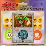 The Rayquaza Constructed Starter Deck (Japanese: 構築済みスターター レックウザデッキ), together with the Deoxys Constructed Starter Deck, was released alongside the Clash of the Blue Sky expansion on July 1, 2004. The pairing of Deoxys and Rayquaza as the half deck's focal Pokémon are likely a reference to their appearance in the upcoming movie Destiny Deoxys. Rayquaza is featured as a Pokémon-ex card, with the remainder of the half deck comprising Fire, Water, and Lightning Pokémon. The half deck also comes with a rulebook, damage counters, status counters, and a coin.