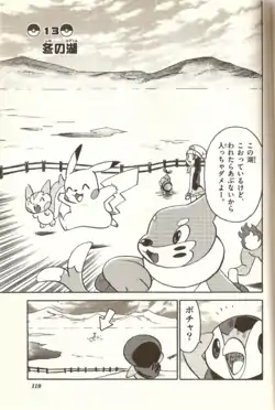 (Japanese: 冬の湖 Winter's Lake ) is the twenty-seventh chapter of the Pocket Monsters Diamond & Pearl manga created by 坂井 孝行 Sakai Takayuki.