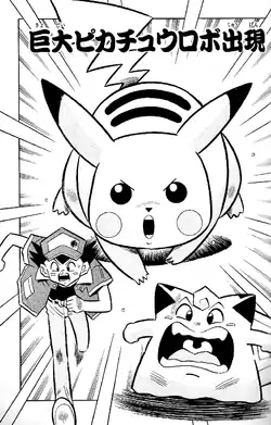The Giant Pikachu Robot (Japanese: 巨大ピカチュウロボ出現 The Giant Pikachu Robot) is the forty-sixth chapter of the Pokémon Pocket Monsters manga.