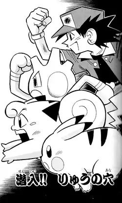 To the Dragon's Den!! (Japanese: 潜入!!りゅうの穴 Infiltration!! The Dragon's Hole) is the one hundred second chapter of the Pokémon Pocket Monsters manga.