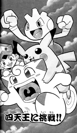 A Challenge to the Elite Four! (Japanese: 四天王に挑戦!! A Challenge to The Big Four!!) is the one hundredth-sixth chapter of the Pokémon Pocket Monsters manga.
