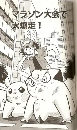 (Japanese: マラソン大会で大爆走! Roaring Around in the Marathon Tournament!) is the sixth chapter of the Pocket Monsters BW manga created by 穴久保幸作 Kosaku Anakubo.