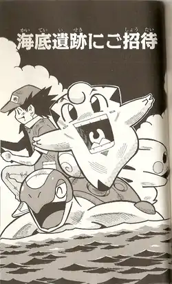 (Japanese: 海底遺跡にご招待 Invited to the Undersea Ruins) is the twelfth chapter of the Pocket Monsters BW manga created by 穴久保幸作 Kosaku Anakubo.