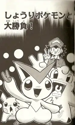 (Japanese: しょうりポケモンと大勝負! The Victory Pokémon and the Big Match!) is the thirteenth chapter of the Pocket Monsters BW manga created by 穴久保幸作 Kosaku Anakubo.