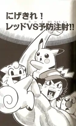(Japanese: にげきれ!レッドVS予防注射!! Run! Red VS Immunization!!) is the twenty-seventh chapter of the Pocket Monsters BW manga created by 穴久保幸作 Kosaku Anakubo.